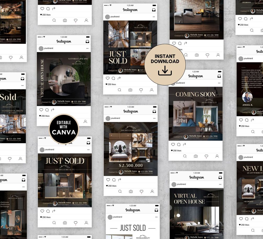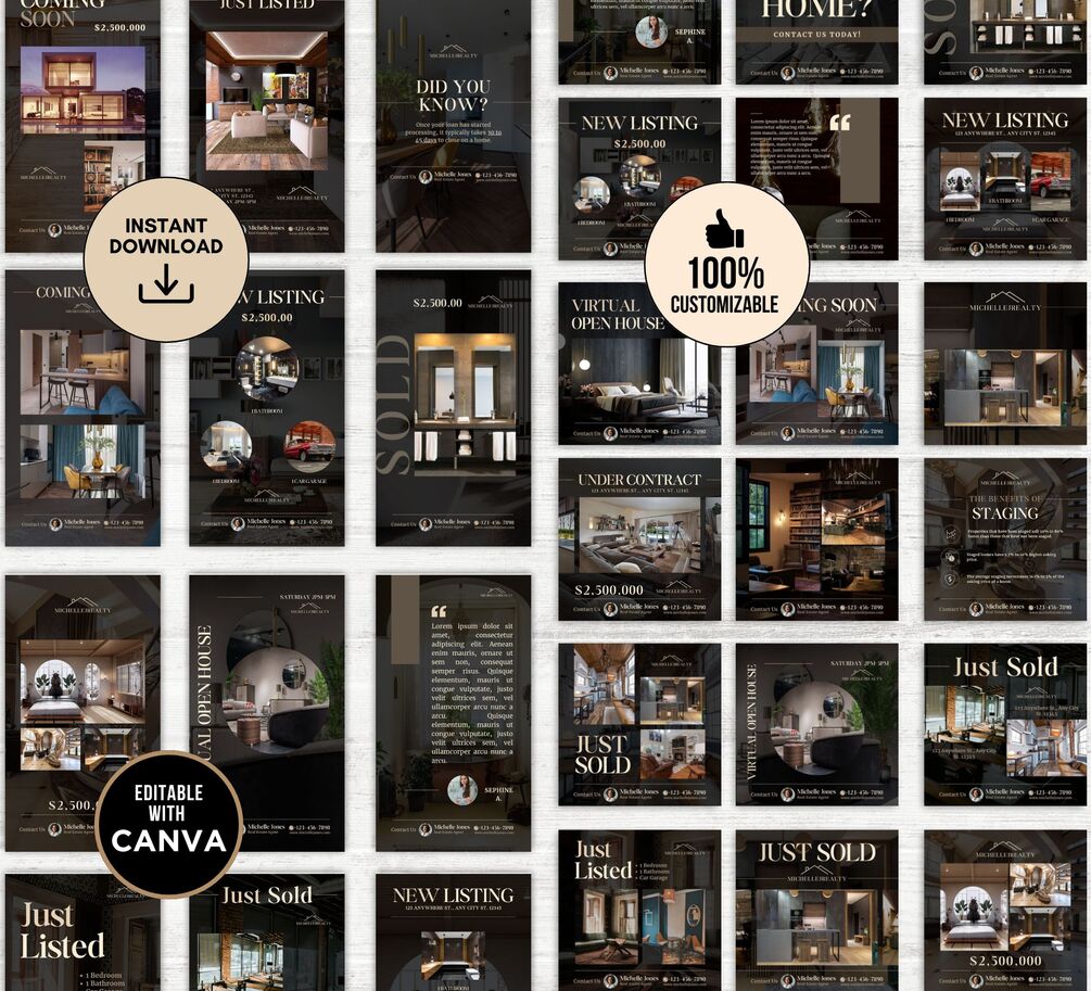 110 Luxury Real Estate Instagram Templates Instagram Stories, Real Estate Marketing, Real Estate Instagram Templates, Editable Canva Templates