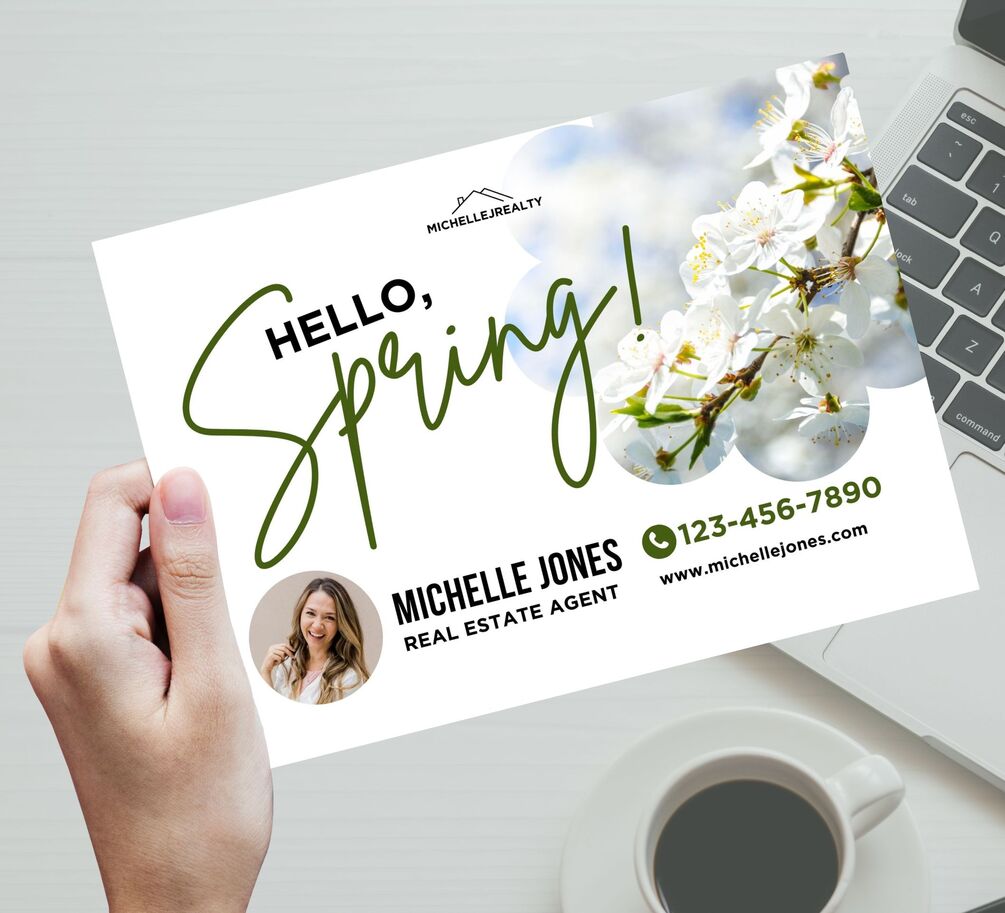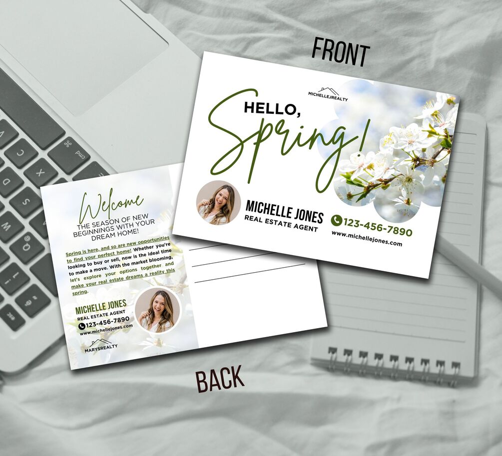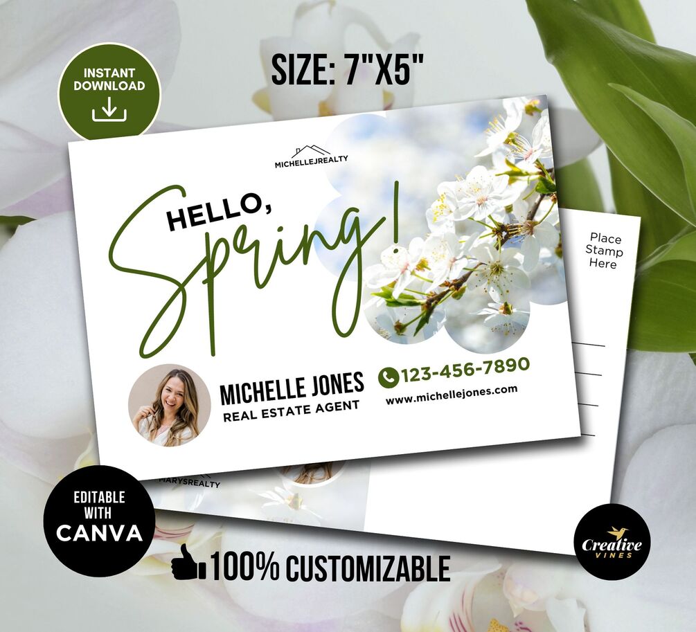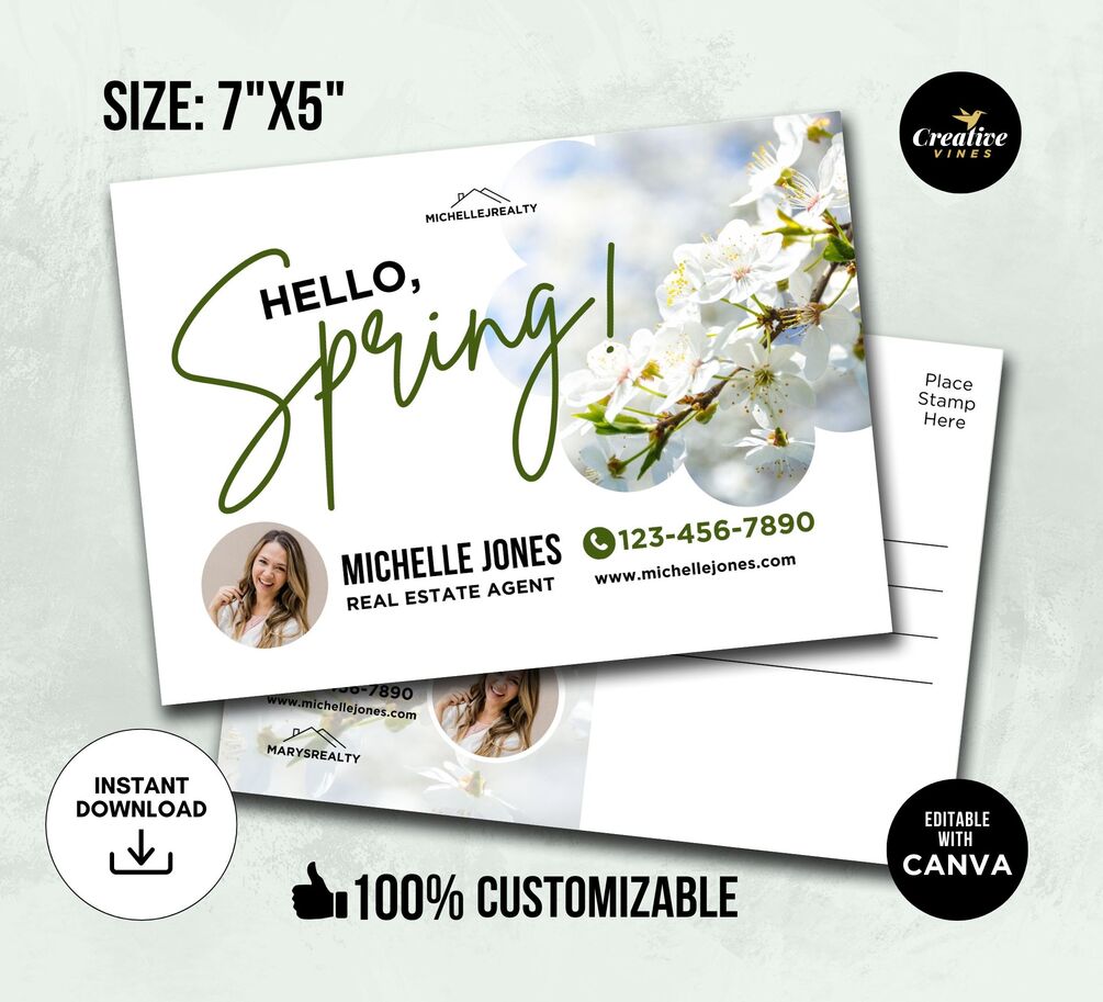Real Estate Hello Spring Postcard 7W" X 5H" Size | Digital Download Canva Template