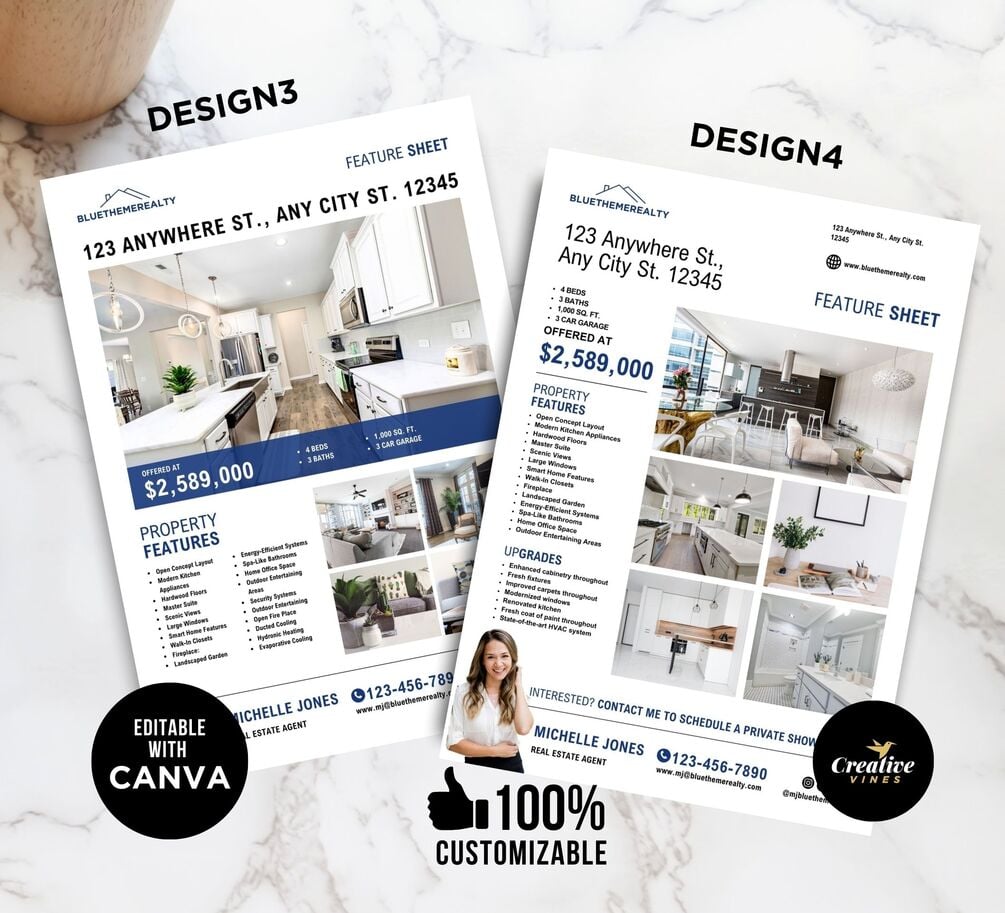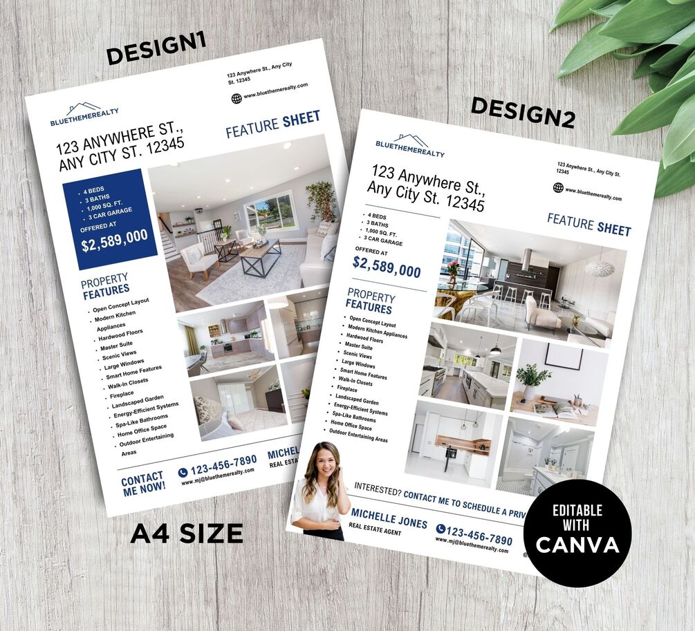- Blue Theme 4-design Real Estate Home Feature Sheet Bundle A4 Size
